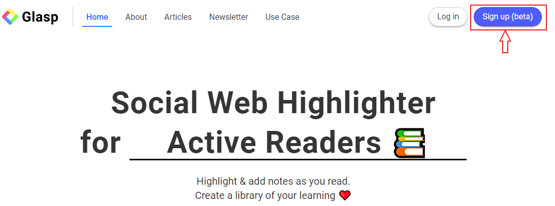 1. Click on signup from the [`website`](https://glasp.co/secret-signup)&#x20;